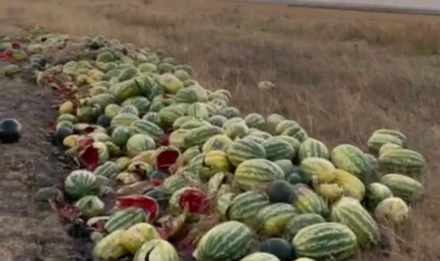 Tekirdağ'ın Muratlı ilçesinde Ballıhoca Mahallesi merasında yol kenarına bırakılan karpuzlar görenlerin dikkatini çekti. Tarım arazisi içindeki yolda onlarca karpuzun gelişigüzel dökülmüş ve bir kısmının parçalanmış olduğu görüldü.