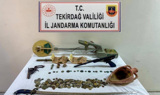 Tarihi eser kaçakçılığına yönelik operasyonlarda 12 adet tarihi obje, 94 adet sikke, 14 adet çeşitli tarihi eser ile 2 adet dedektör ve 7 adet kazı malzemesi, 15 kilogram barut, 1 adet jeneratör, 2 adet para sayma makinesi, 132 adet senet, 4 adet çek, 5 adet ajanda, 9 adet cep telefonu, 2 adet bilgisayar ve 1 adet tablet ele geçirildi.