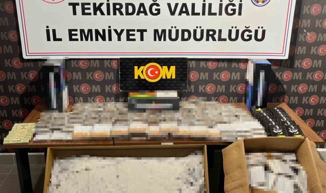 Tekirdağ İl Emniyet Müdürlüğü Kaçakçılık ve Organize Suçlarla Mücadele Şubesi tarafından yürütülen çalışmalarda 383 bin adet dolu ve boş makaron, 50 kilogram tütün, 3 adet sigara sarma makinesi, 1 bin 406 paket gümrük kaçağı sigara, 150 adet gümrük kaçağı puro, 200 adet elektronik sigara kartuşu, 178 adet elektronik sigara, 20 adet elektronik sigara likiti, 3 adet elektronik sigara filtresi, 4 adet ısıtmalı tütün cihazı, 1 bin 462 adet sigara sarma kağıdı ve 1 şişe el yapımı alkollü içki ele geçirildi. Operasyon kapsamında 12 şüpheli gözaltına alınırken, şahıslar hakkında 5607 sayılı kanuna muhalefetten yasal işlem başlatıldı.
