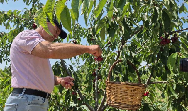 Çiftçi Vedat Ataç ise bu yılki üretimden duyduğu memnuniyeti, "Bu sene kalite yüksek oldu, kalibre büyüdü. Alanımız 8 dönüm, 200'e yakın kiraz ağacım var. Bu seneki hasattan memnunum" sözleriyle dile getirdi.