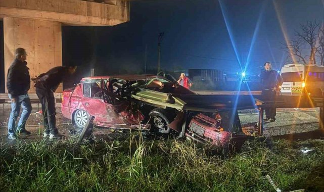 Kaza, bugün sabah saat 04.00 sıralarında Tekirdağ Çevreyolu'nun İstanbul yönü Ramada Otel yakınlarında meydana geldi. Fatih Keser idaresindeki 59 ANS 574 plakalı otomobil, sürücüsünün direksiyon kontrolünü kaybetmesi sonucu bariyerlere çarptı. Çarpmanın şiddetiyle araç adeta hurdaya döndü.