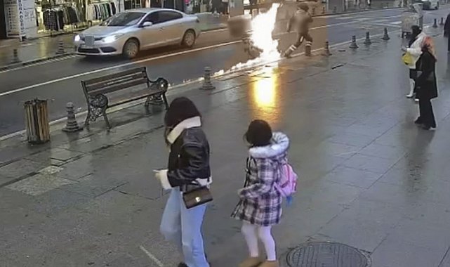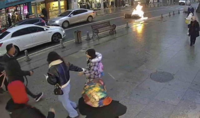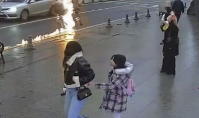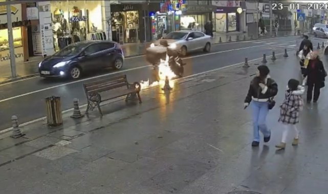 Tekirdağ Çorlu'da seyir halindeki motosiklet bir anda alev topuna döndüğü anlar kameraya yansıdı. Sürücü hızla üzerinden atlayarak yanmaktan son anda kurtuldu.