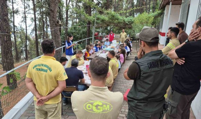 Süleymanpaşa ilçesine bağlı Kumbağ Mahallesi'nde orman ekiplerini ziyaret eden öğrenciler, yangınlara karşı günlerce uykusuz mücadele veren görevlilere yazdıkları mektupları bizzat okuyarak takdim etti.