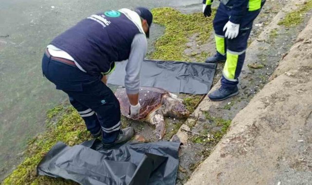 Tekirdağ'da sahile caretta caretta cinsi ölü deniz kaplumbağası vurdu.