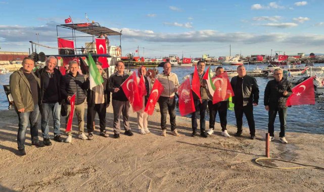Tekirdağ'da onlarca tekne Sumud Filosu'na destek için denize açıldı
