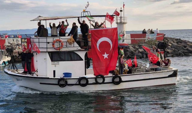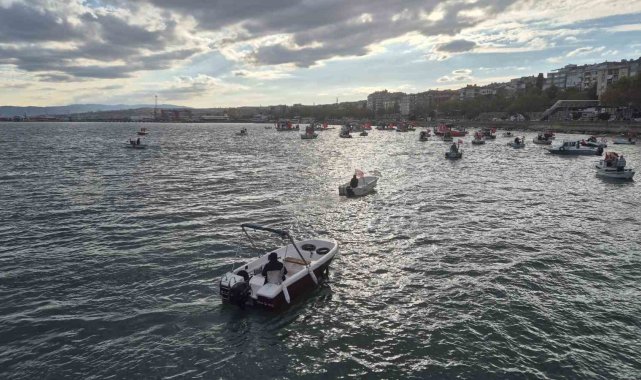 Balıkçıların oluşturduğu deniz konvoyu, sahil boyunca siren sesleri ve sloganlarla ilerleyerek Gazze'ye yönelik dayanışma mesajı verdi.