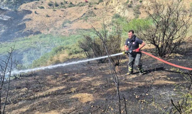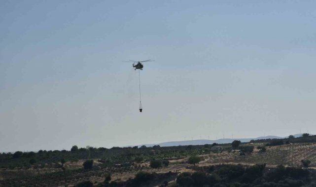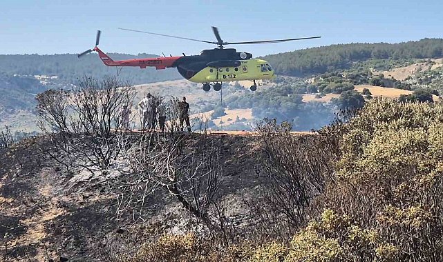 Tekirdağ'da otluk ve makilik alanda çıkan yangına havadan ve karadan müdahale edildi