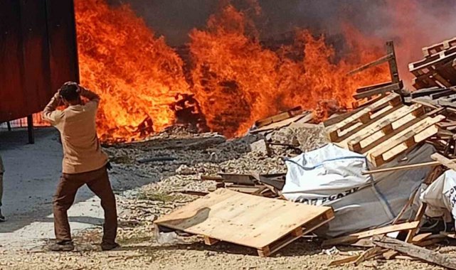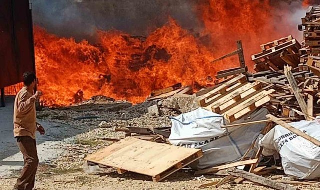 Tekirdağ'da palet fabrikasından alevler yükseldi: Yüzlerce palet alev alev yandı