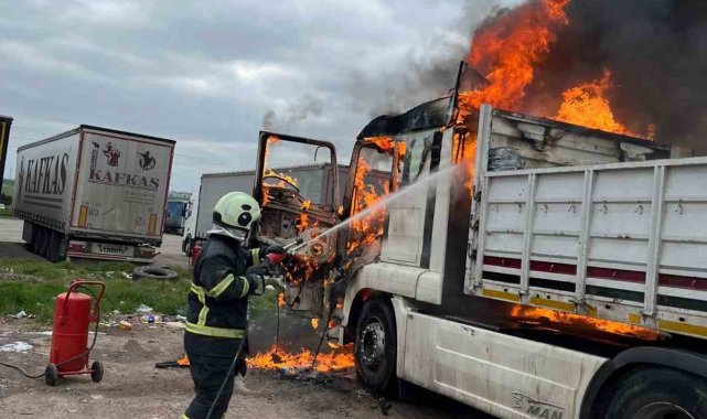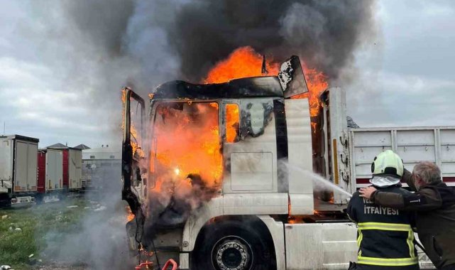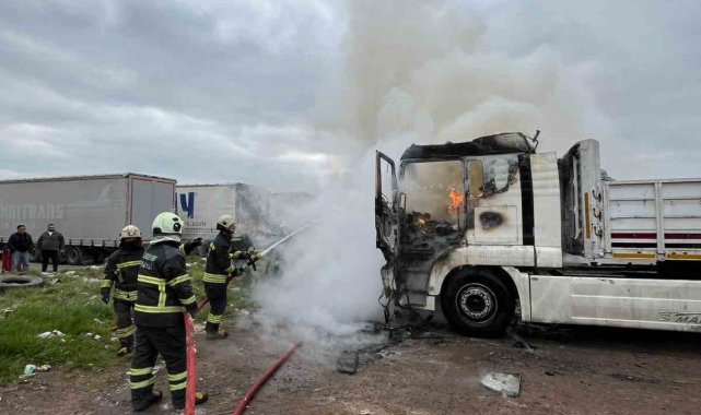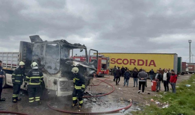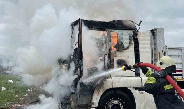 Tekirdağ'da park halindeki bir tır alev alev yanarak hurdaya döndü. Yangına uykuda yakalanan şoför, dumandan etkilenmesi sonucu hastaneye kaldırıldı.