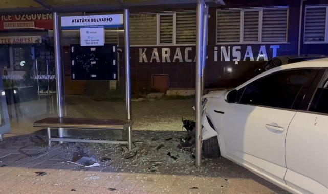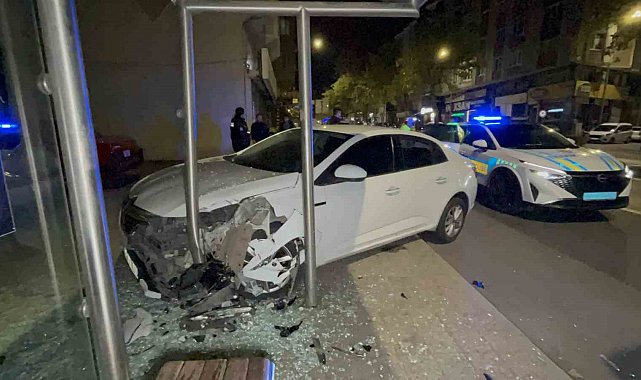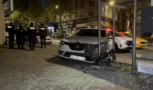 Tekirdağ Çorlu'da polisin 'dur' ikazına uymayan alkollü sürücünün kullandığı otomobil, sürücüsünün direksiyon hakimiyetini kaybetmesi sonucu yolcu durağına daldı.