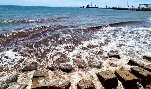 Tekirdağ'da poyraz sonrası deniz yüzeyi kızıl yosunla kaplandı