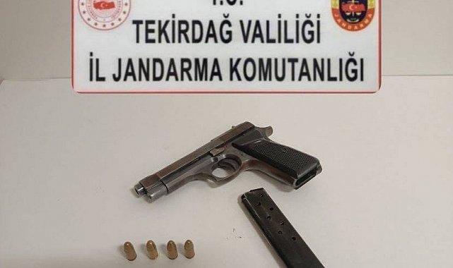 Tekirdağ İl Jandarma Komutanlığı ekipleri, Saray ilçesi Cumhuriyet Mahallesi'nde 07 Şubat 2025 tarihinde Ş.Ş.'nin evine düzenlenen operasyonda 2 adet tabanca, 2 adet fişek ve 2 adet şarjör ele geçirdi.