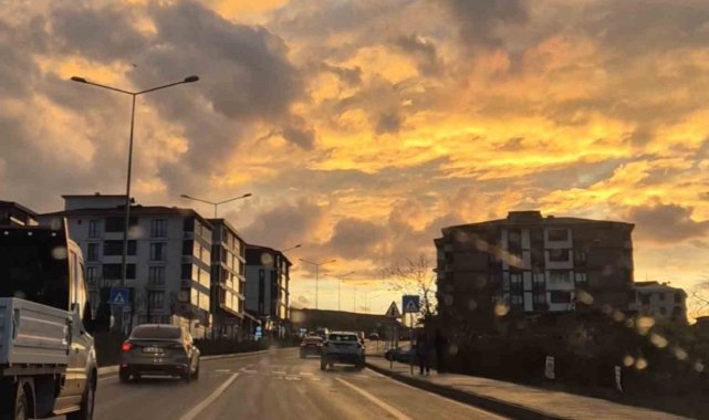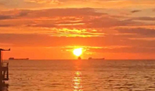 Tekirdağ'ın Süleymanpaşa ilçesinde günün ilk ışıkları, Marmara Denizi üzerinde altın tonlarına bürünen gökyüzüyle birleşince ortaya kartpostallık bir manzara çıktı. Sahil hattında yürüyüş yapanlar ve işine gitmek için yola çıkan vatandaşlar, bulutların arasından süzülen ışıkla birlikte kenti aydınlatan bu tabloyu cep telefonlarıyla kaydetti. Pek çok kişi, sabah mesaisine bu eşsiz görüntüler eşliğinde başlamanın huzurunu yaşadı.