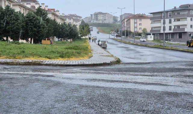 Kısa süreli etkili olan yağışın ardından bazı bölgelerde yol kenarlarında su birikintileri göze çarptı.
