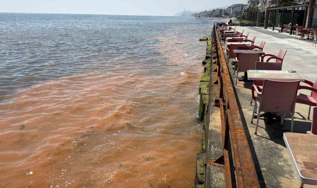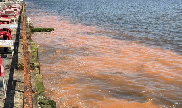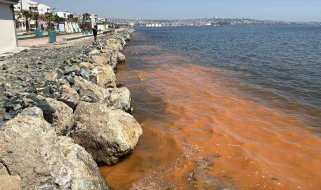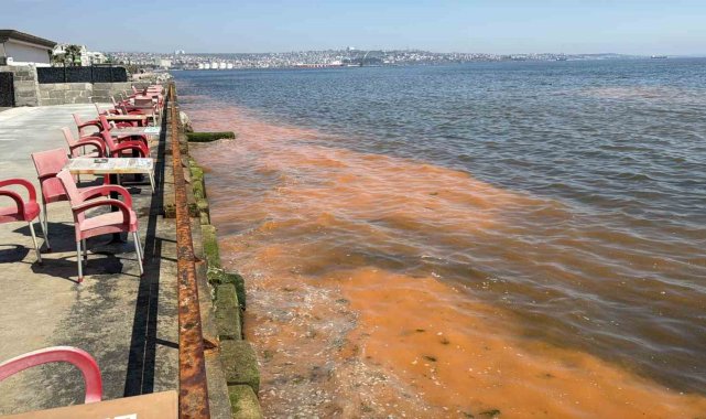 Tekirdağ sahilinde deniz suyunun bazı bölgelerde turuncu ve kahverengi tonlara dönmesi dikkat çekti.