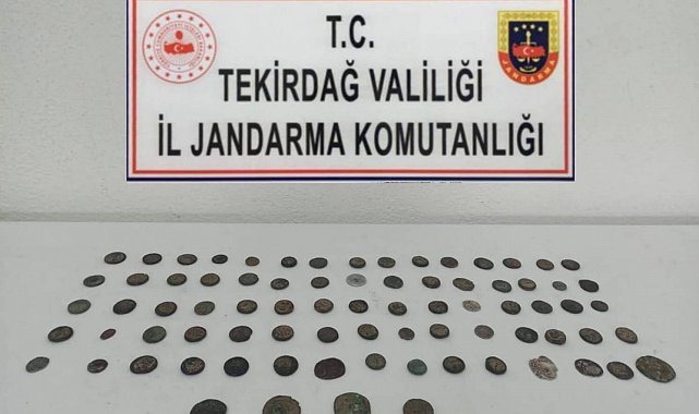 Tekirdağ İl Jandarma Komutanlığı tarafından yürütülen çalışmalar çerçevesinde Çorlu ilçesi Önerler Mahallesi'nde şüpheli şahıslar B.İ., O.B. ve S.K.'nın üst aramaları yapıldı. Yapılan aramalarda, tarihi eser niteliği taşıdığı değerlendirilen 79 adet sikke ele geçirildi. Şahıslar hakkında adli işlem başlatıldığı öğrenildi.