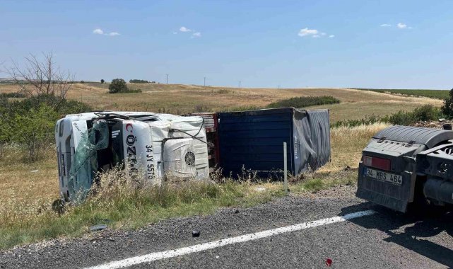 Tekirdağ'ın Muratlı ilçesi kırsalında kontrolden çıkıp tarlaya devrilen tırın sürücüsü yaralandı.