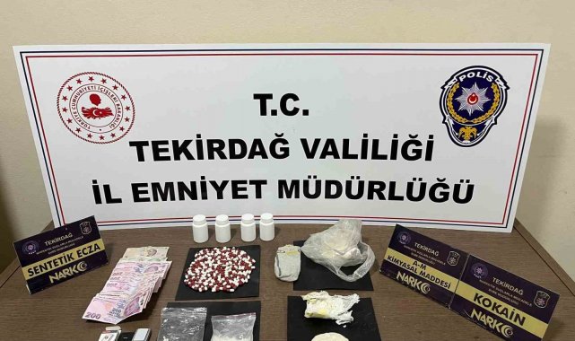 Tekirdağ İl Emniyet Müdürlüğü Narkotik Suçlarla Mücadele Şube Müdürlüğü ekipleri kent genelinde yürüttükleri çalışmalar kapsamında 875 gram çeşitli uyuşturucu madde, 456 adet uyuşturucu hap, 1 adet ruhsatsız tabanca ve uyuşturucu ticaretinden elde edildiği değerlendirilen 15 bin 70 TL'ye el koydu.