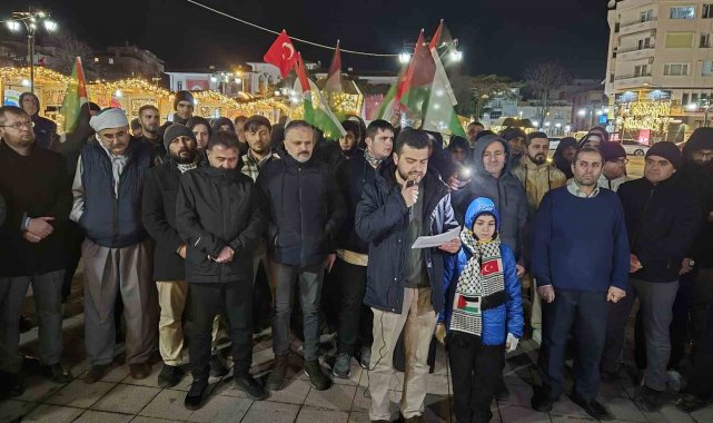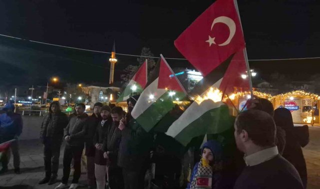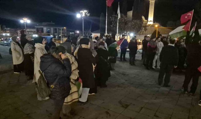 Tekirdağ'da vatandaşlar, İsrail'in Gazze'ye yönelik saldırılarını protesto etmek amacıyla teravih namazının ardından bir araya geldi.