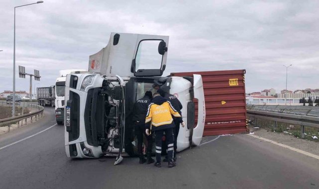 Tekirdağ'da virajı alamayan tır devrildi: 1 yaralı