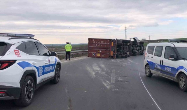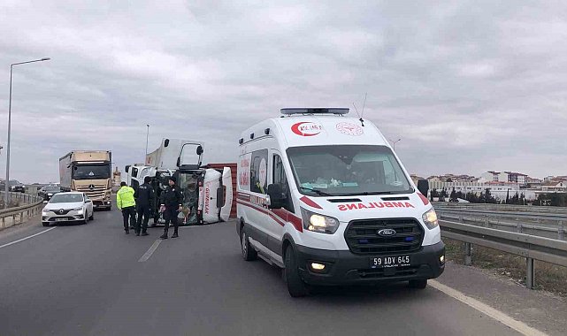 Tekirdağ'da virajı alamayan tırın devrilmesi sonucu 1 kişi yaralandı.