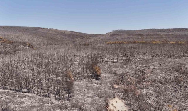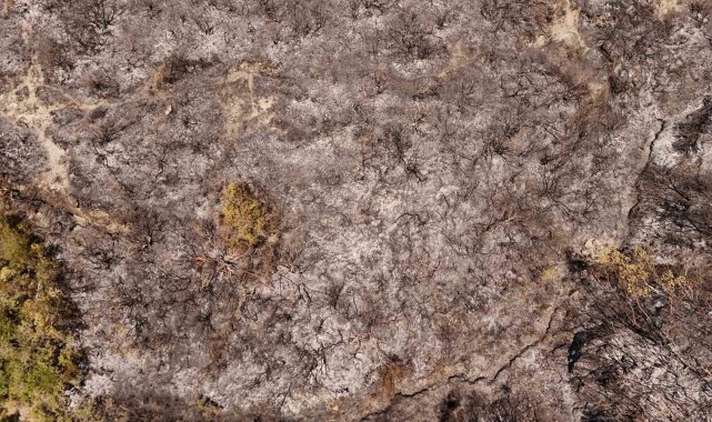 Şarköy'e bağlı İstiklal Mahallesi'nde 15 Temmuz'da tarım arazisinde başlayıp ormanlık alana sıçrayan yangında mücadele 42 saat sürdü. Ekiplerin yoğun ve aralıksız çalışmalarıyla yangın kontrol altına alındı. Soğutma çalışmalarının sürdüğü bölgenin son hali dronla havadan görüntülendi. Görüntüler, alevlerin ne denli geniş bir alanı etkisi altına aldığını ve doğaya verdiği zararın boyutunu gözler önüne serdi. Siyahlaşan toprak, küle dönmüş ağaçlar ve kavrulmuş alanlar, yaşanan felaketin ciddiyetini bir kez daha ortaya koydu.