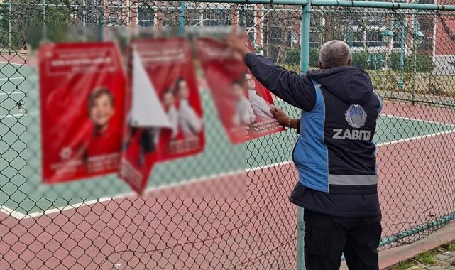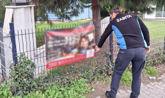 Tekirdağ'da zabıta ekiplerinden izinsiz afiş reklamlara denetim