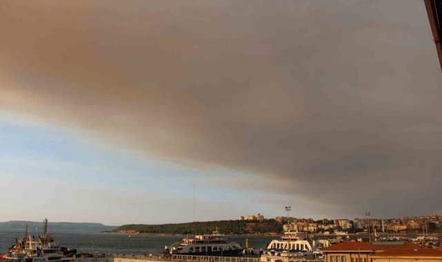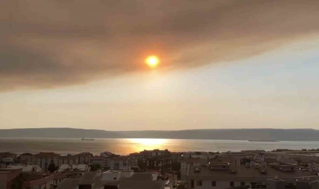 Tekirdağ'daki orman yangınının dumanı Çanakkale Boğazı'nı kapladı