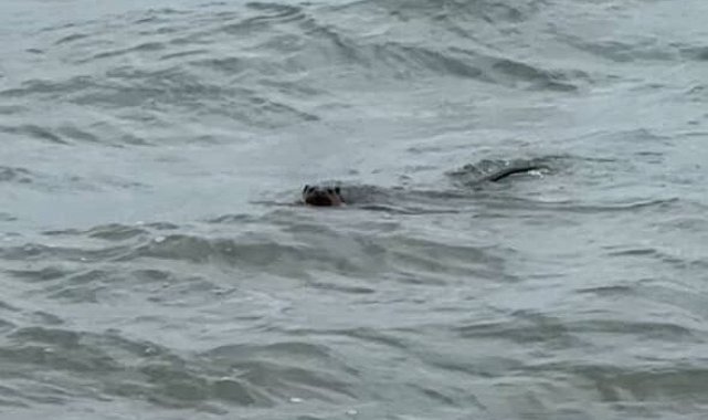 Marmara Denizi'nin Tekirdağ kıyılarında nadir görülen bir su samuru, denizde yüzerken vatandaş kamerasına yansıdı.