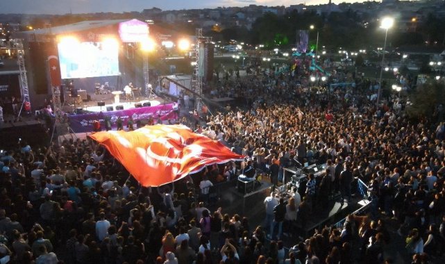 Konserde müzik grubu 'İkilem' sahne alırken, alanı dolduran gençler dron ile havadan görüntülendi