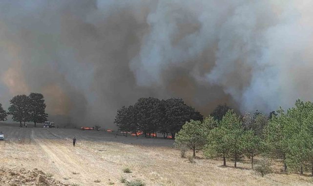 Tekirdağ'ın Çerkezköy ilçesinde çıkan orman yangınına müdahale devam ed...