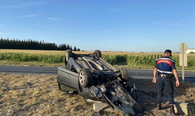 Tekirdağ'ın Ergene ilçesinde kamyonetle çarpışarak takla atan otomobili...