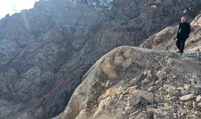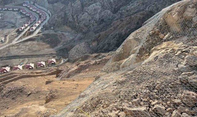 Tekkale köyünü tehdit eden kayalar için tel örgü çözüm