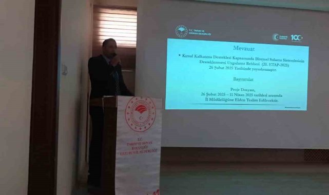 Erzurum İl Tarım Müdürlüğü Ziraat Mühendisi Olkay Çağlar Kırsal Kalkınma Destekleri kapsamında bireysel sulama sistemlerinin desteklenmesi ve uygulamaları konusunda bilgilendirdi.