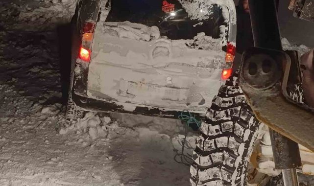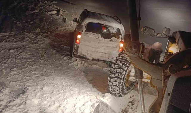 Tekman'da karda mahsur kalan araç belediye ekiplerince kurtarıldı