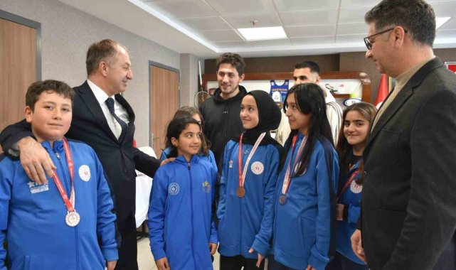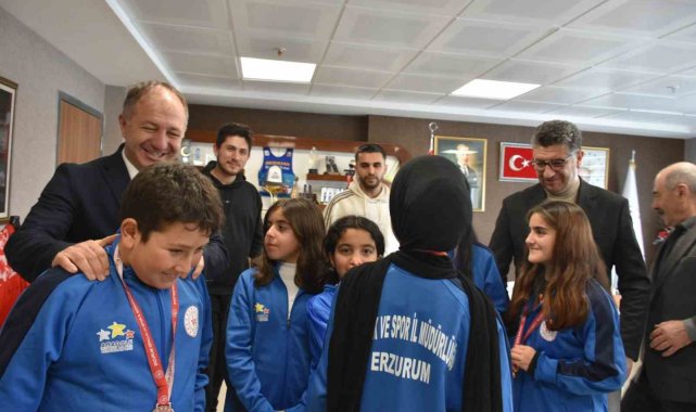 Tekmanlı minik sporcular, İlçe müdürü Fatih Arslan, antrenör Can Taşkıran ve İlçe Gençlik Spor personeli Emrah Nalkiran ile birlikte Erzurum Gençlik ve Spor İl Müdürü Levent Çakmur'u da ziyaret ettiler.