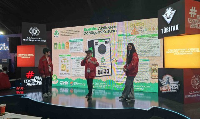 Canik Özdemir Bayraktar Keşif Kampüsü öğrencileri, geri dönüşüm sürecinin etkin ve verimli bir şekilde gerçekleştirilebilmesi adına hazırladıkları 'EcoBin' projesiyle TEKNOFEST KKTC'de 'En İyi Sunum' ödülün sahibi oldu. TEKNOFEST KKTC Sosyal İnovasyon Yarışması Ortaokul Kategorisi'nde kazandığı 'En İyi Sunum' ödülüyle başarılarına bir yenisini daha ekleyen Canik Özdemir Bayraktar Keşif Kampüsü öğrencileri, tasarımı ve üretimi kendilerine ait olan projeyle jüri üyeleri ve ziyaretçiler tarafından takdirleri topladı. Sürdürülebilir çevre anlayışla hazırladıkları projeyle TEKNOFEST KKTC'de 'En İyi Sunum' ödülünün sahibi olan Canikli öğrencileri tebrik eden Canik Belediye Başkanı İbrahim Sandıkçı, "Canik'imizde özgün fikirleri ve eserleriyle geleceğe yön veren nesilleri yetiştirmeye devam ediyoruz" dedi.