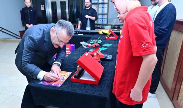 TEKNOFEST'te derece elde eden öğrenciler, Eskişehir Valisi Hüseyin Aksoy'a ziyarette bulundu. Ziyarette, öğrenciler geliştirdikleri projeleri Vali Hüseyin Aksoy'a tanıtarak sergiledi. Vali Aksoy, öğrencilerin çalışmalarını ilgiyle inceleyip başarılarını tebrik etti ve projelerin üzerine imza atarak gençlere desteğini gösterdi.