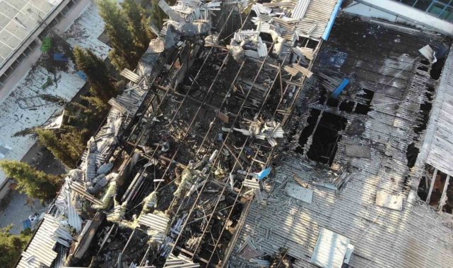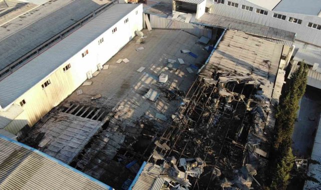 Yangın nedeniyle fabrikanın büyük bir bölümü enkaza dönüşürken, günün ilk ışıklarıyla birlikte fabrikanın gökyüzünden dron ile çekilen görüntülerinde zararın boyutu da belli oldu. Yangın sonrası oluşan tahribat havadan görüntülendi. Olay yeri inceleme ve bilirkişi heyetinin tahkikatı devam ediyor.