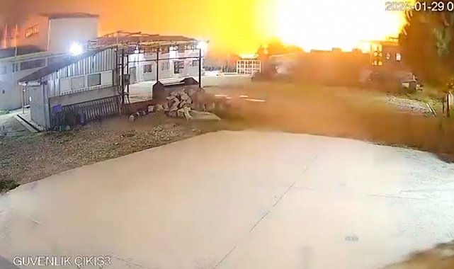 Tekstil fabrikasında yaşanan patlamaya ait görüntüler iş yerinin güvenlik kamerasına anbean yansıdı. Gece yaşanan patlamada alevler ile birlikte etraftaki çatı malzemelerinin de havaya uçtuğu görüldü. Patlama sırasında o bölgede kimsenin olmaması büyük bir facianın önüne geçerken patlamayla ilgili polis ve itfaiye ekiplerinin araştırma başlattığı öğrenildi.