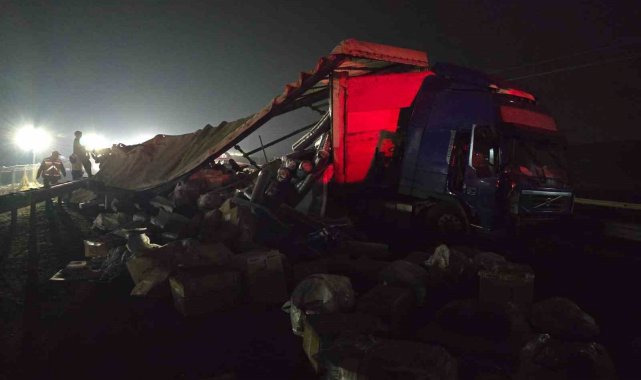 Şanlıurfa-Diyarbakır karayolunda tekstil malzemesi yüklü tırın devrilmesi sonucu sürücü yaralandı, yol trafiğe kapandı.