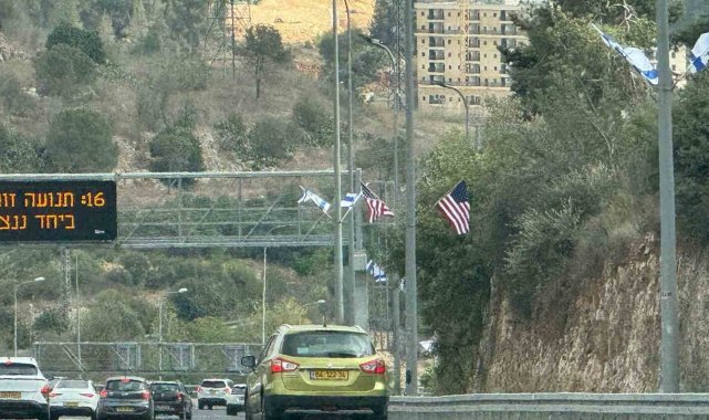 ABD Başkanı Donald Trump'ın bugün Kudüs'e yapması planlanan kritik ziyareti öncesinde, Tel Aviv'den Kudüs'e uzanan güzergah boyunca vatandaşları İsrail ve ABD bayrakları karşılıyor.