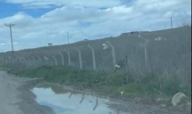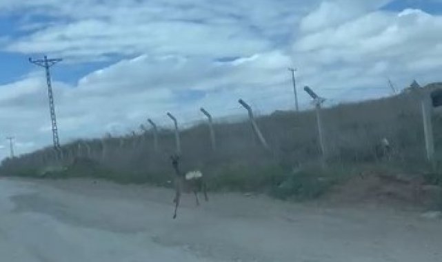 Yozgat'ın Sorgun ilçesinde Şeker Fabrikası yolunda bir karaca fabrika tarafından örülen tellerin arasında mahsur kaldı. O sırada yoldan geçen aracın çıkardığı sesle ürken ve ne tarafa kaçacağını bilemeyen karaca, cep telefonu kamerasıyla görüntülendi.