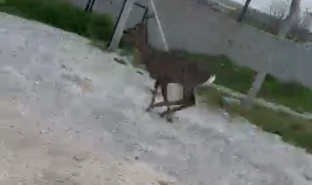 Yönünü bulmak için koşan karaca tellere çarparak çıkış yolu aradı.