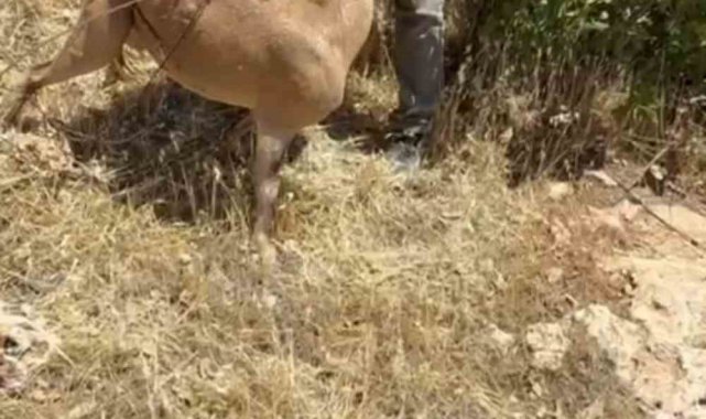 Mardin'in Midyat ile Nusaybin ilçeleri arasındaki Bagok Dağları kırsalında tel örgülere takılan dağ keçisi, duyarlı bir vatandaş tarafından kurtarıldı.