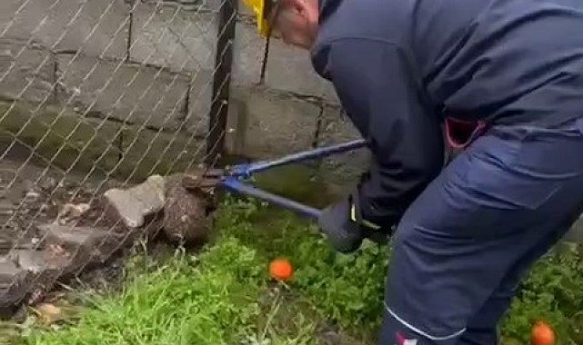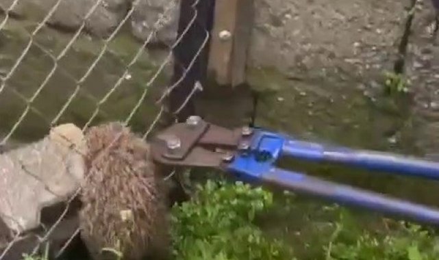 Tel örgüye sıkışıp, mahsur kalan kirpi kurtarıldı