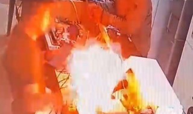 Telefon bataryası bomba gibi patladı, panik anı kamerada