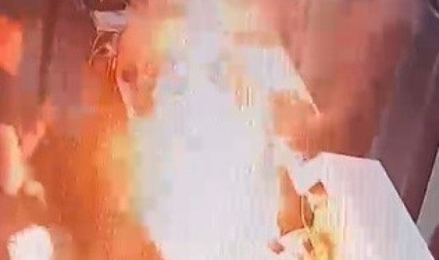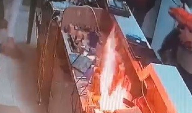 Hatay'da bir telefoncu dükkanında cep telefonu bataryasının patladığı anlar güvenlik kamerasına yansıdı.