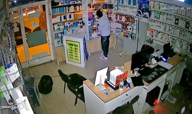 Olay, Üniversitesi Mahallesi Yahya Kemal Caddesi'nde meydana geldi. Edinilen bilgiye göre, kimliği belirsiz bir şahıs, bir telefoncu dükkanının camını kırarak içeri girdi. İçeri girdikten sonra başındaki kapüşonunu çıkartan ve kameralara aldırış etmeyen pişkin hırsızın rahatlığı dikkat çekti. Uzun süre dükkanda kalan hırsız adeta seçerek malzeme çaldı. Hırsız; 5 adet sıfır telefon, 1 adet tablet, 4 adet akıllı saat, 3 adet kablosuz kulaklık, çeşitli markalarda şarj cihazları ve yaklaşık 60 bin TL'yi çalarak kayıplara karıştı.