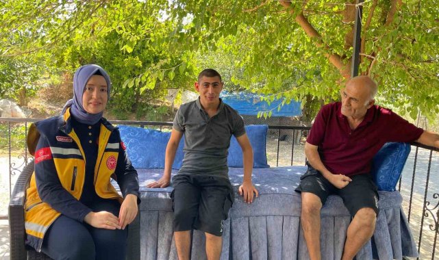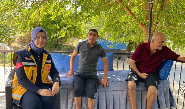 Osmaniye'de yediği erik nefes borusuna kaçan engelli Erkan Asker'in telefonda tarif ettiği ilk yardım müdahalesiyle hayatını kurtaran Acil Tıp Teknisyeni Öznur Bolat, Asker ailesini evinde ziyaret etti.
